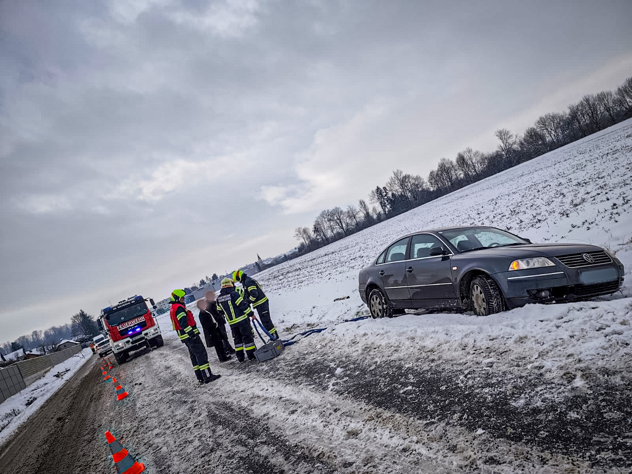 Aufgrund der winterlichen Fahrbahnverhältnisse kam ein PKW ins Schleudern und rutschte in den Straßengraben neben der Bundesstraße. Mithilfe der Seilwinde des RLF sowie mit Muskelkraft unserer Einsatzkräfte konnte das Fahrzeug rasch und sicher wieder auf die Fahrbahn zurückgebracht werden.