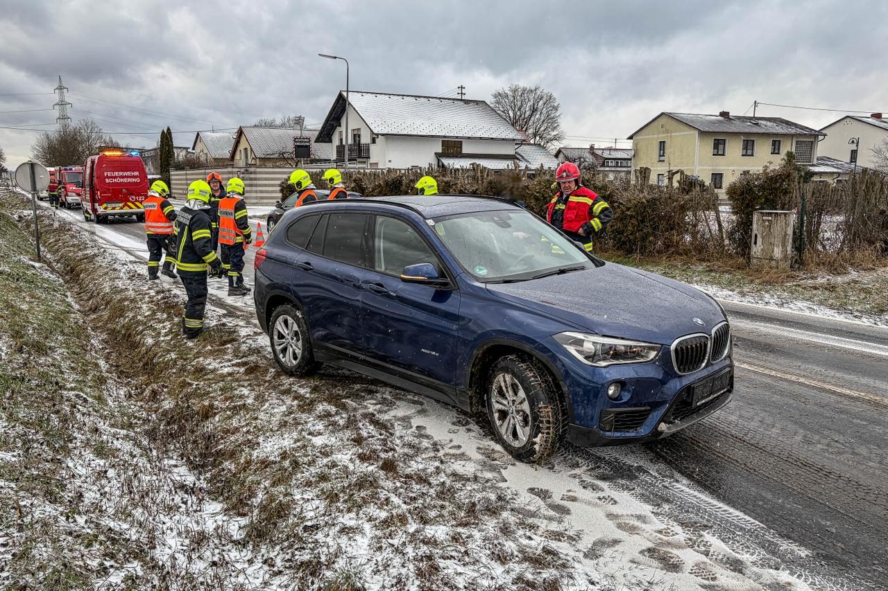 Am Einsatzort stellte sich rasch heraus, dass keine Personen eingeklemmt oder verletzt waren. Ein PKW war aufgrund der schneeglatten Fahrbahn von der Straße abgekommen und im Straßengraben zum Stillstand gekommen.