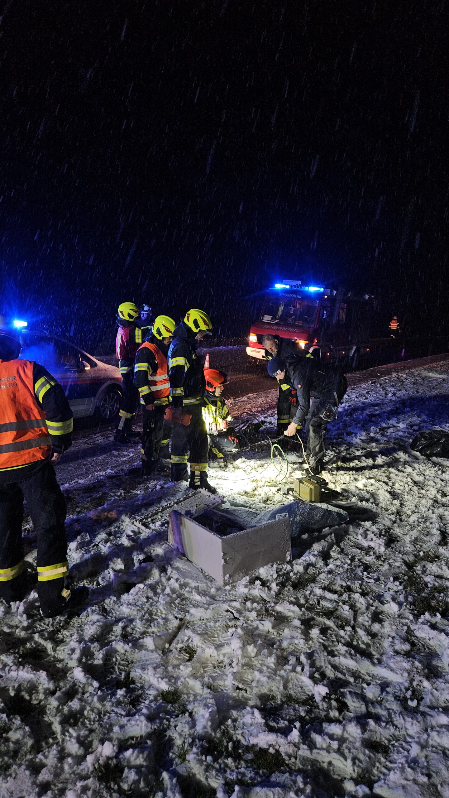 Gemeinsam wurde der Kasten provisorisch repariert und gesichert, sodass die betroffenen Haushalte wieder versorgt wurden.